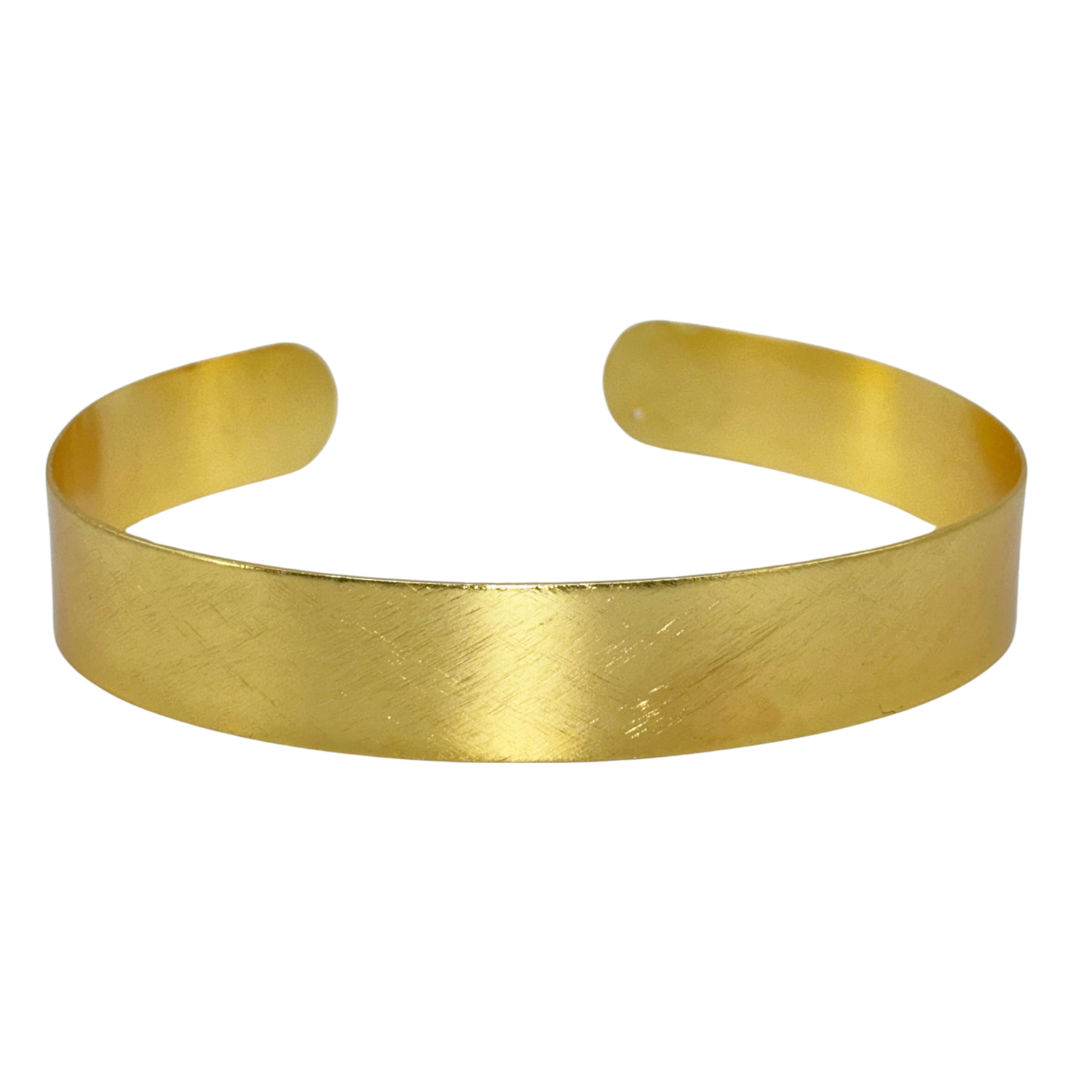 El Choker Line está compuesto por una línea ancha . Su cierre abierto permite ajustarlo fácilmente al cuello, adaptándose con comodidad. Fabricado en latón con un baño de oro de 18k y un acabado mate rayado.